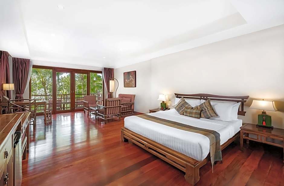 Located in the low-rise Thai-style building, this room features a private balcony facing a garden and a lawn. The interior is decorated in the classic Oriental style.